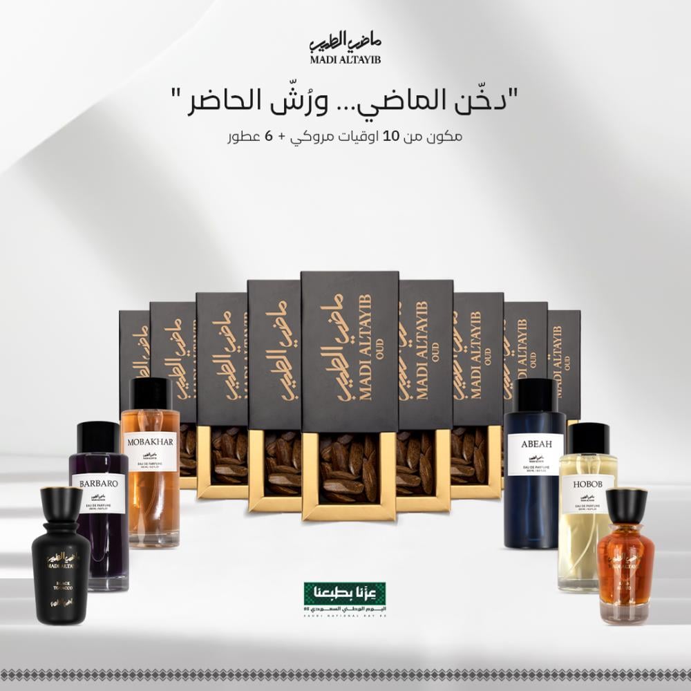البكج يحتوي على 16 صنف : 6 عطور و 10 أوقيات عود مروكي الأولين